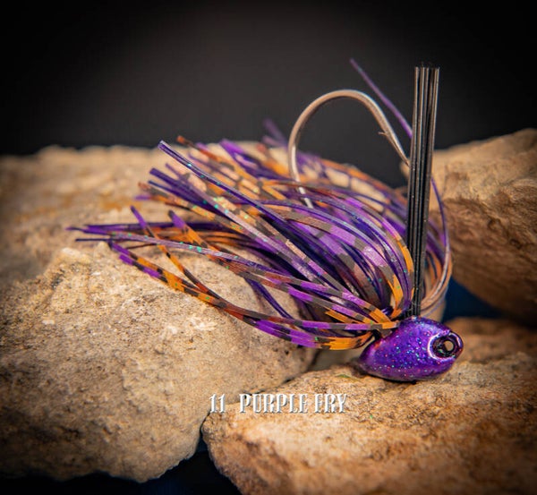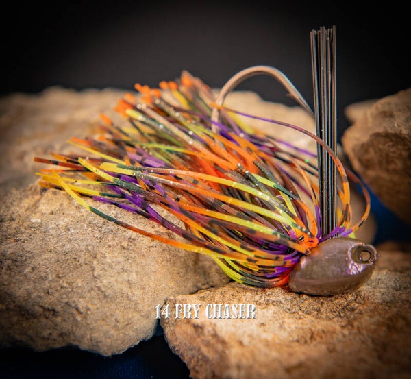 Our brush jigs are made to pitch into the heaveiest of cover. With stout weed gaurds recessed line tie and hand tied skirts with 24 gauge cooper coated wire. They come in 1/4, 3/8 and 1/2oz sizes in our 20 standard colors. Contact us if you need a custom color made.