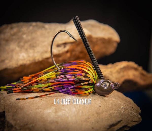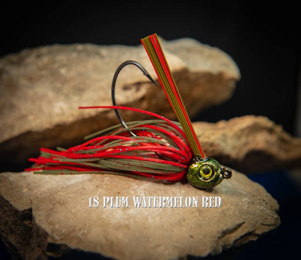 Our swim jigs are ready to intice the most finiky of bass in cover or open water. with strong weed gaurds and hand tied skirts with 24 gauge copper coated wire. They come with a wide gap hook for you favorite tailer. They come in our 20 standard colors or contact us for custom colors.